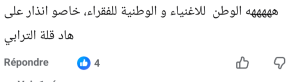 وكتب أحدهم: “العلم الوطني للفقراء، أما الأغنياء فلا يعطونه أي قيمة”، وعلق ثان تعليقا في السياق نفسه: “الوطن الأغنياء والوطنية للفقراء، يجب أن يتلقى إنذار على سوء تربيته”.